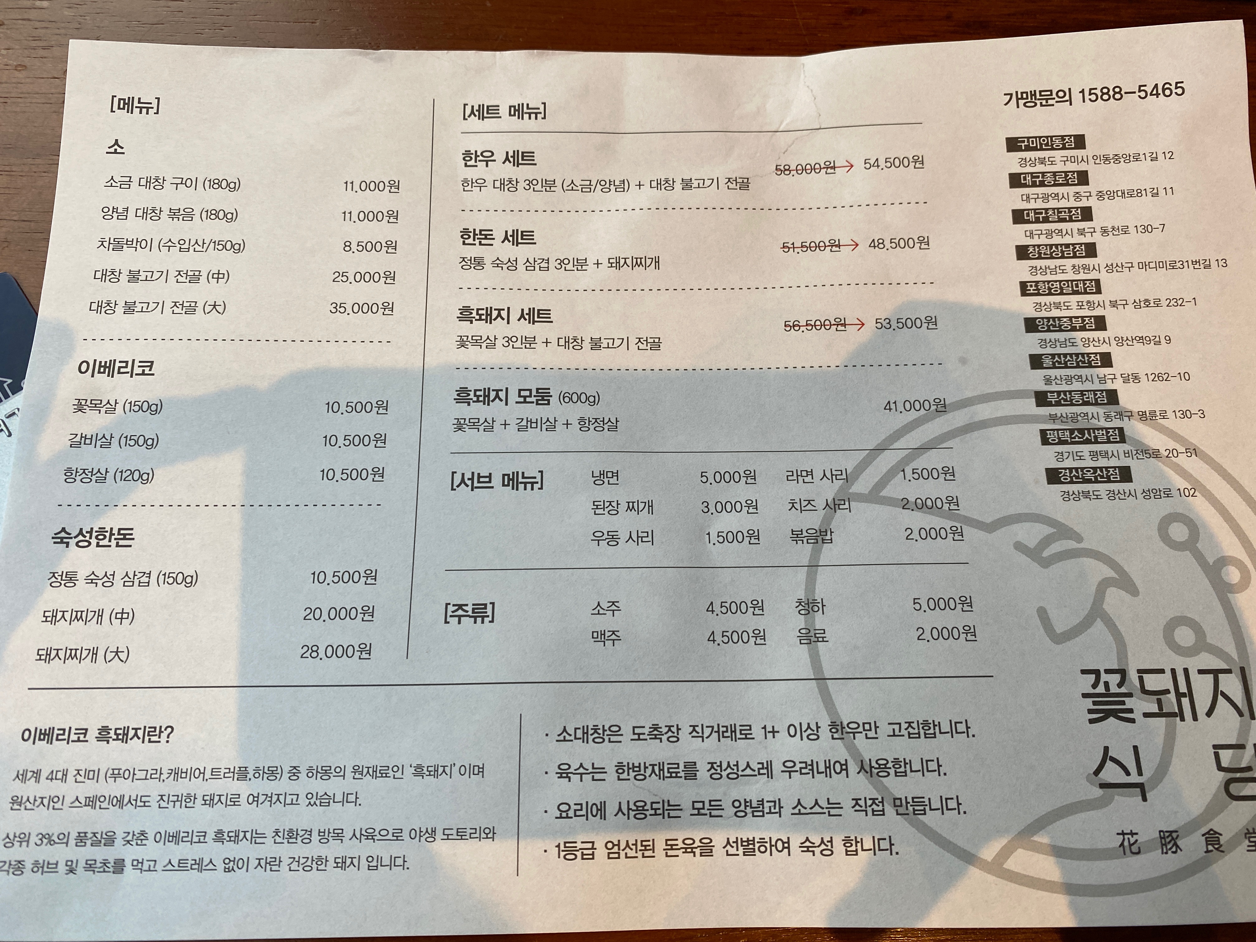 돼지고기를 파는 곳인데 다른 식당과는 다르게 대창도 팔고 있더라구요:)