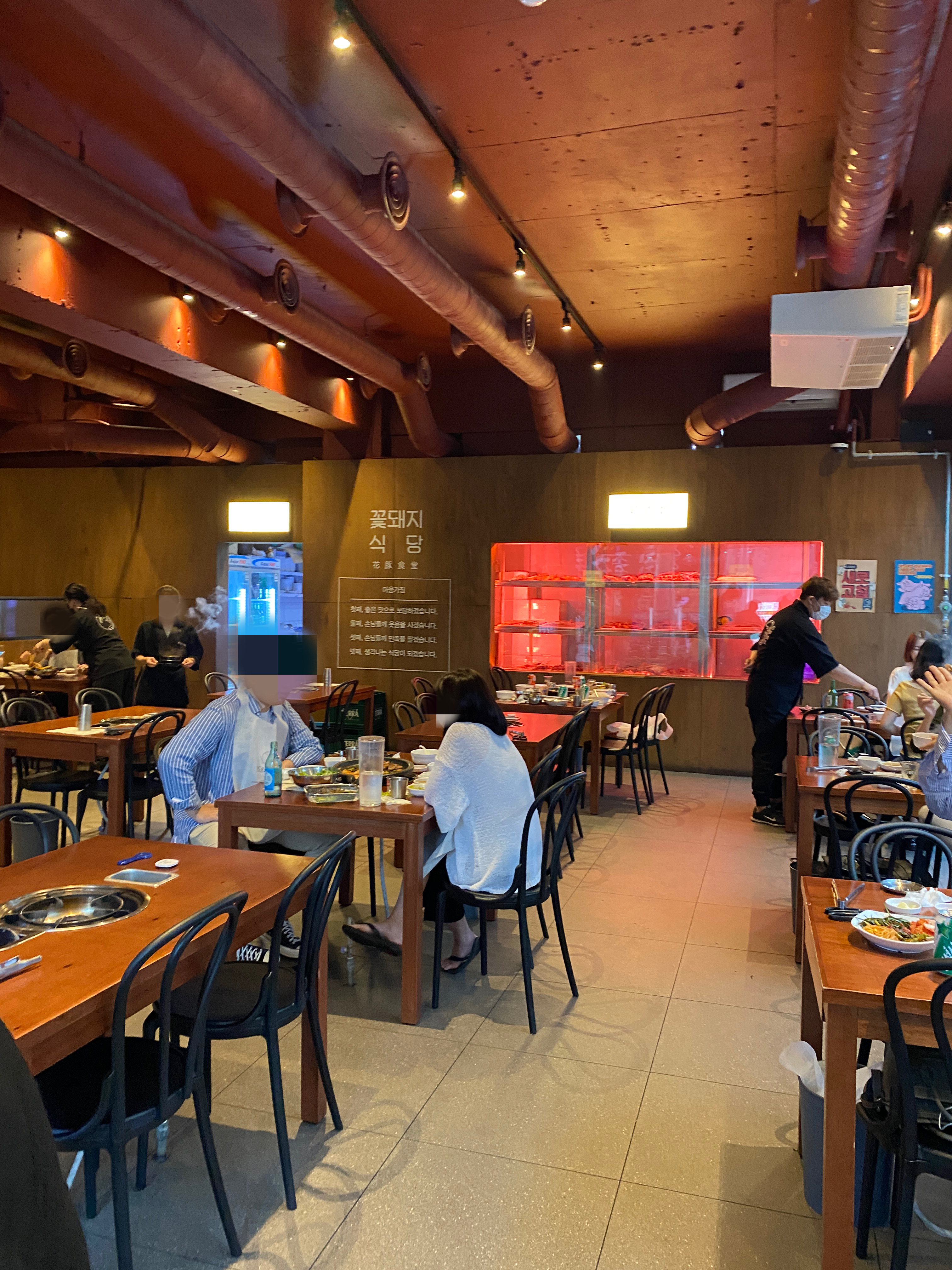 정육점처럼 빨간불로 되어 있었어요