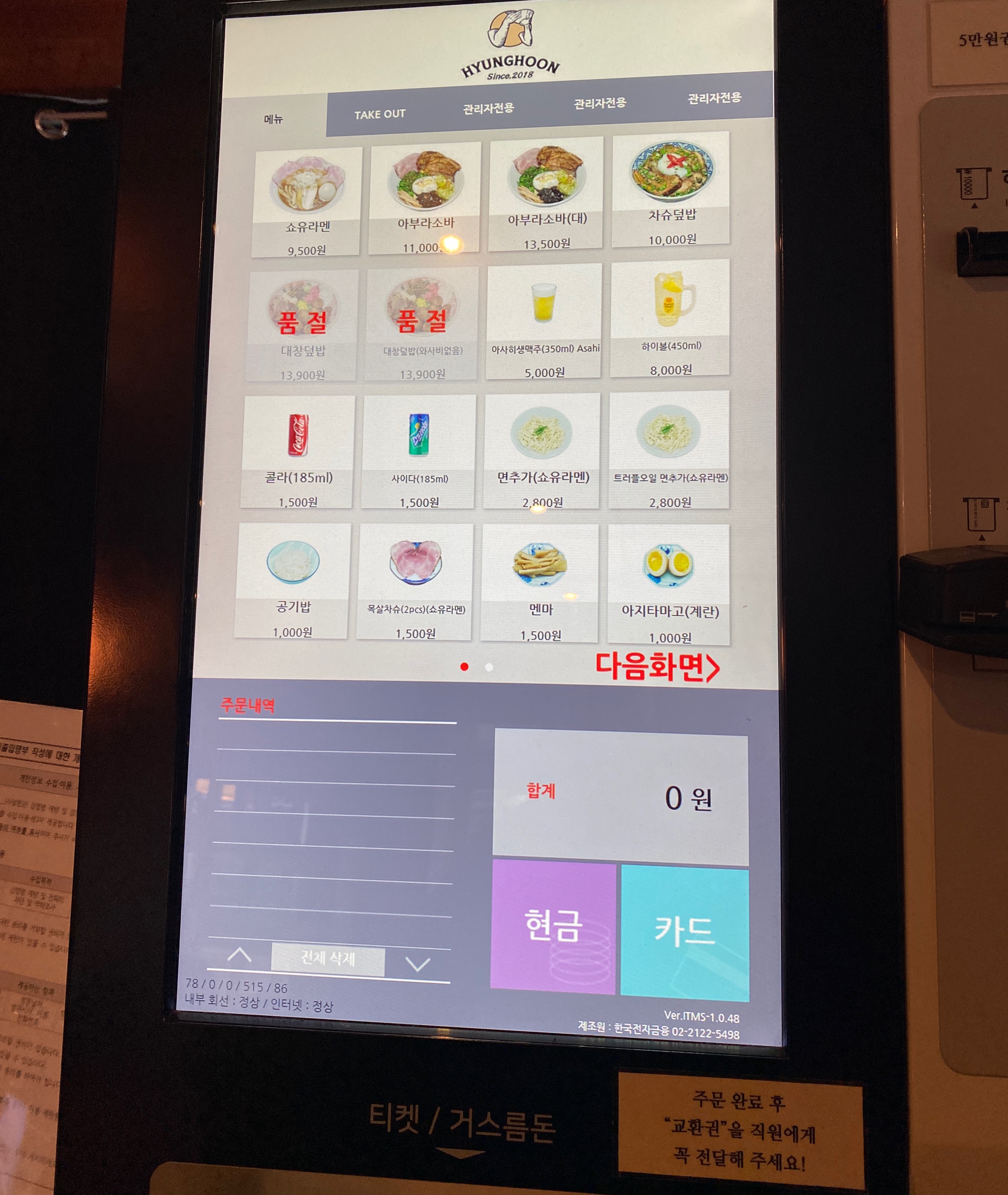 셀프로 선불을 한 뒤에 영수증을 직원분께