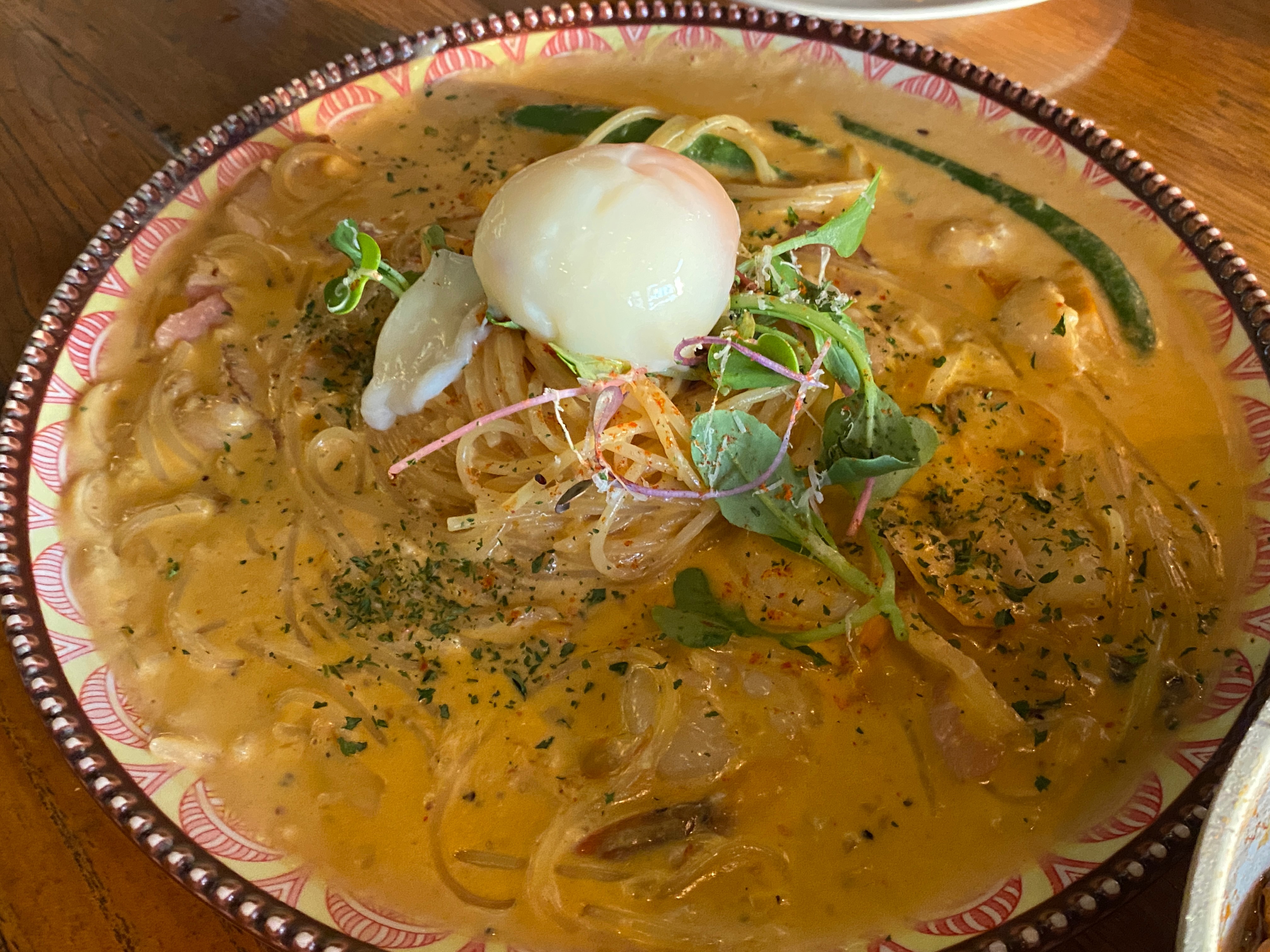 이 파스타는 수란이 올라가져있는
