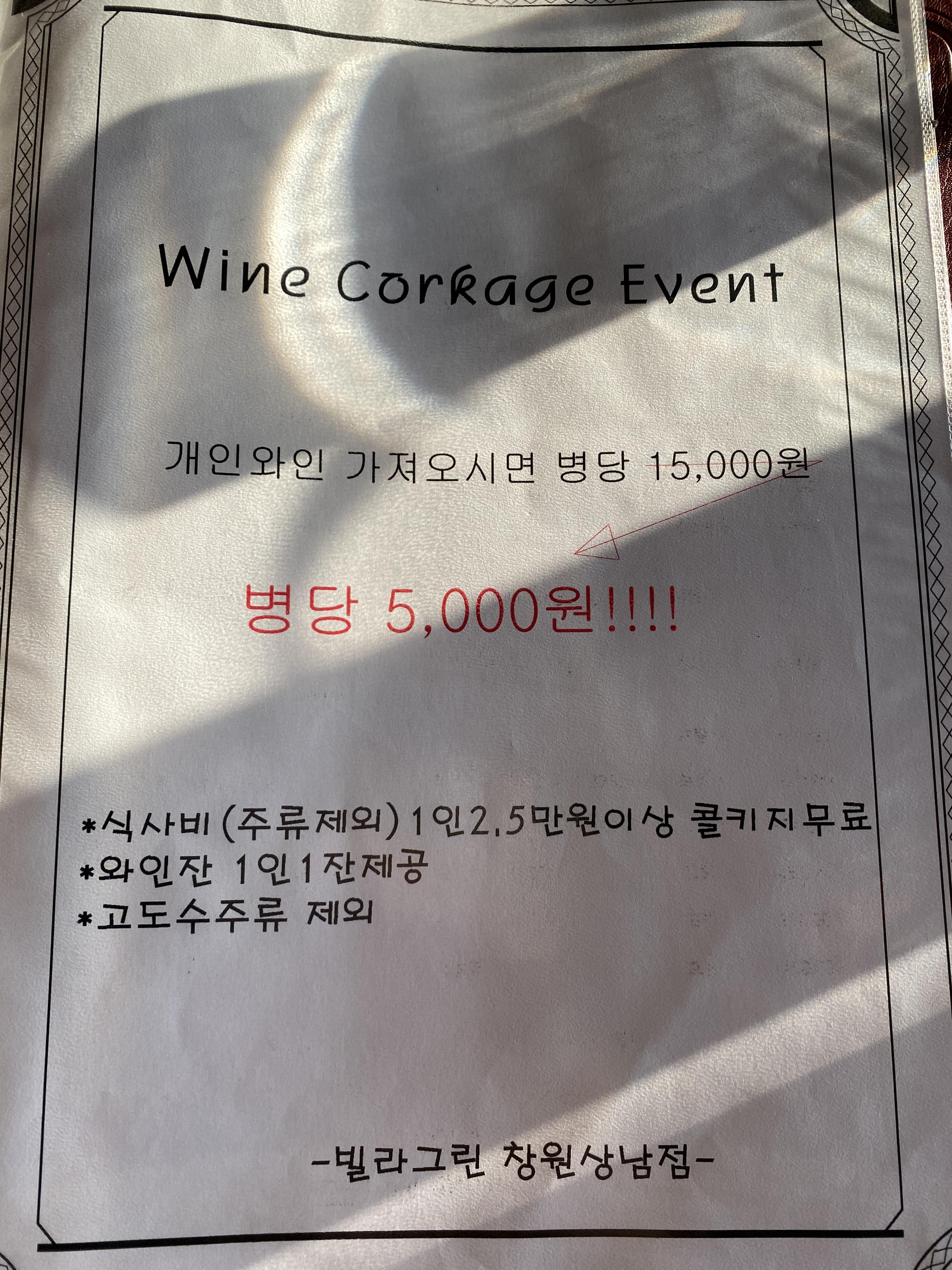 한가지 좋았던 점은 개인와인도 들고올 수 있다는 점!!