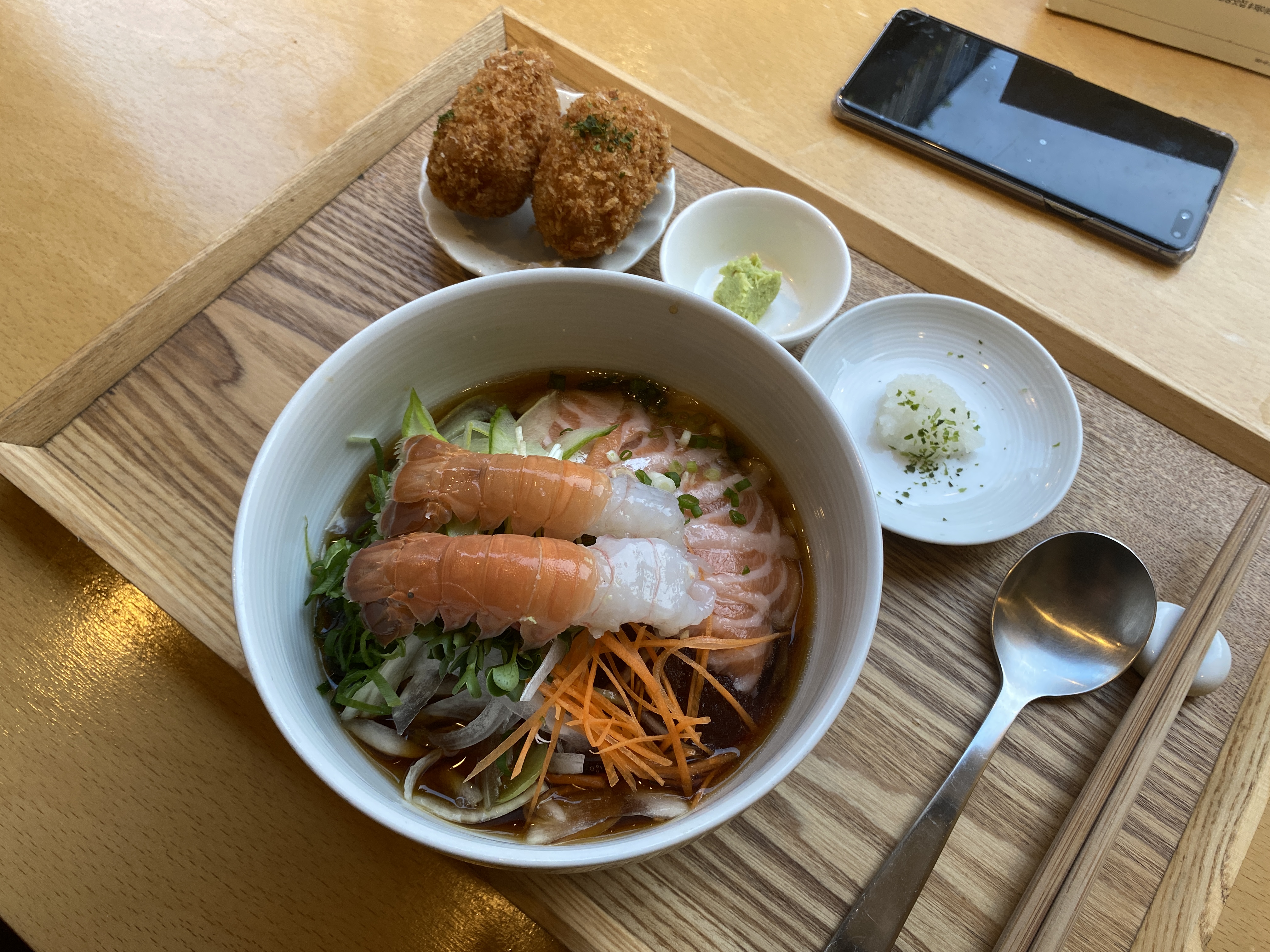 연어소바에 딱새우를 추가해서 주문해봤어요☺️